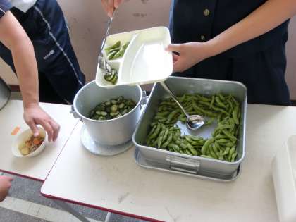 本日のメニューは「肉じゃが」「枝豆」「きゅうりのかつお梅風味」でした。