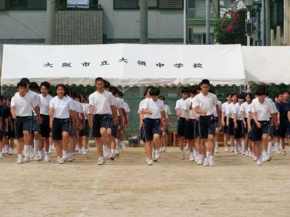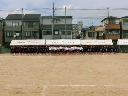 リレーを終え、3年学年種目は最後に回し、閉会式の練習です。