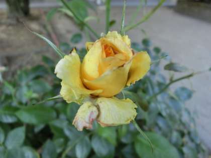 黄色のバラが、日に日に変化して行きます。
