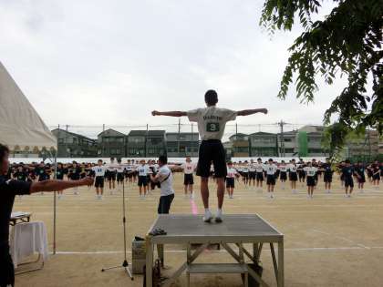 競技上の諸注意の後、プログラム一番、ラジオ体操が行われました。