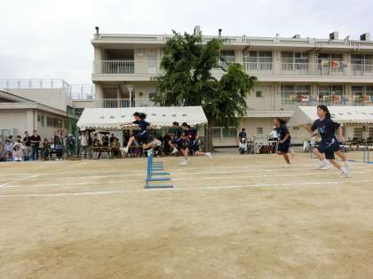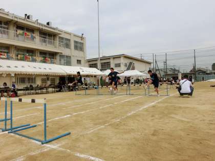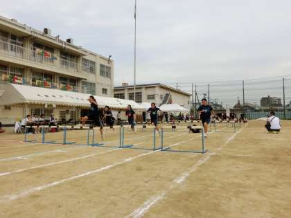 高く跳んでしまうと、時間がかかり、ダッシュのスピードが落ちないよう飛ぶのがポイントです。