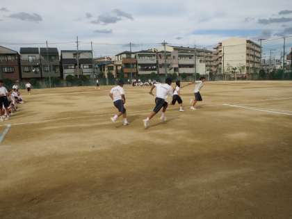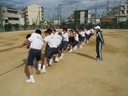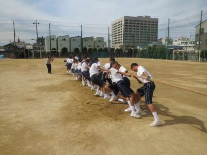 9月12日(金)に1年生は、学級代表・体育委員が企画したスポーツ大会を行いました。種目は綱引きと全員リレーです。生徒たちがルールを決めたり、要項をつくったりし、前日には運動場でバトンパスの練習を行いました。綱引きでは声をかけあいながら、どのクラスも必死の表情で綱を引っ張っていました。どの試合も接戦となり、終わったあとは疲れ切ってしまいました。その後の全員リレーは抜きつ抜かれつのレースで最後はアンカー勝負となりました。レース後は勝ったクラスも負けたクラスも満足感でいっぱいでした。