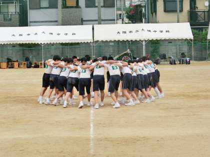 円陣を組んだ後、一人一人をコールし、それぞれが返事を返します。