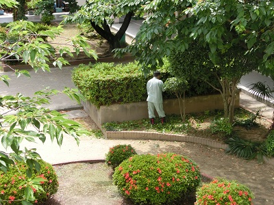 管理作業員さんが、中庭の木々の剪定を行ってくれています。