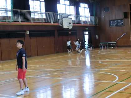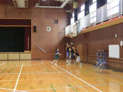 体育館では女子バスケット部が練習しています。