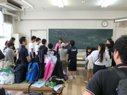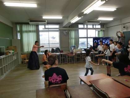 ソンセンニㇺのご指導で、ハングル文字や言葉、名前の学習、韓国の遊びなどが紹介され、みんなが瞳を輝かせて参加していました。