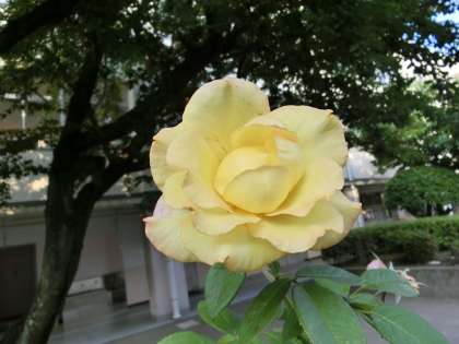 今朝も黄色のバラが咲き誇っています。 短い命ですが、大事に生きているようです。