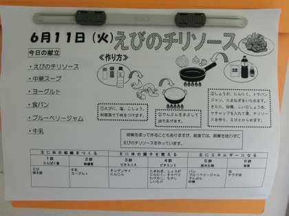 今日のメニューは、「エビのチリソース」!