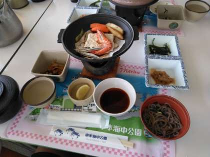 海の幸がいっぱいの陶板焼きを中心に、お腹いっぱいいただいています!