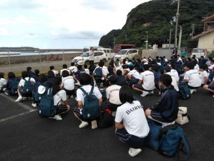 体験を終えて、みんなが集合。 これから、地区ごとに別れて入村式に向かいます。