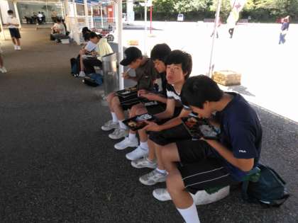 体験活動を終えて、水族館前でお昼ご飯!