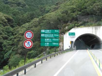 トンネル続きのバイパス。 あと少しで、白浜です。