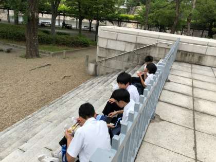 大阪城周辺で昼食タイムです。
