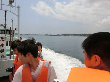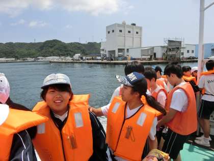 青い海に出ると、生徒たちは早くも興奮!