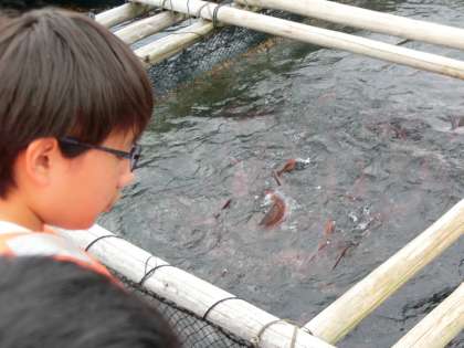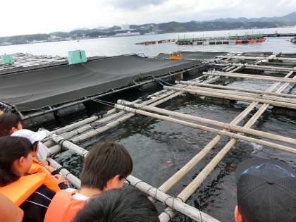 一つのいけすに、500匹あまりの真鯛が泳いでいるようです。