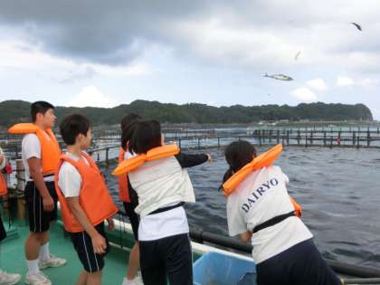 マグロのエサやりを終え、漁船は沖合に出ます。