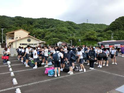 バスやマイクロバスで、地域別に移動。