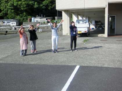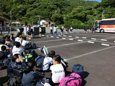 退村式をおえて、集合場所に、生徒たちが地区ごとに集まってきました。