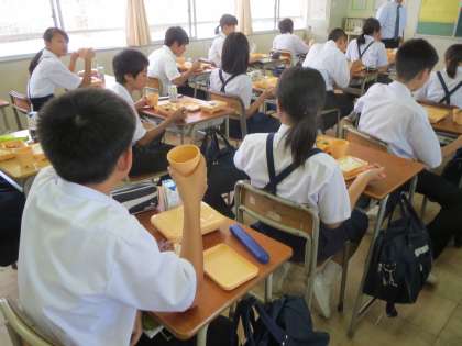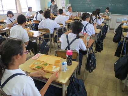 でもどのクラスでも落ち着いた、楽しい雰囲気の給食の様子でした。10月よりカレー・シチュー・ハヤシライスなどのメニューが月3回になります。