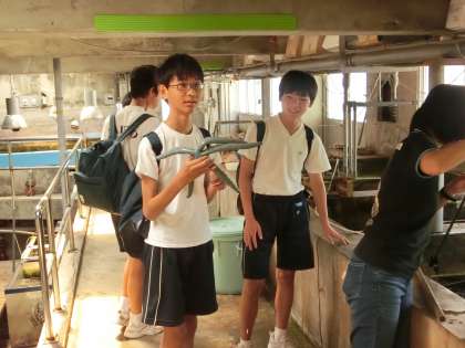 ウミガメから一転、今度はヒトデを手づかみ体験。