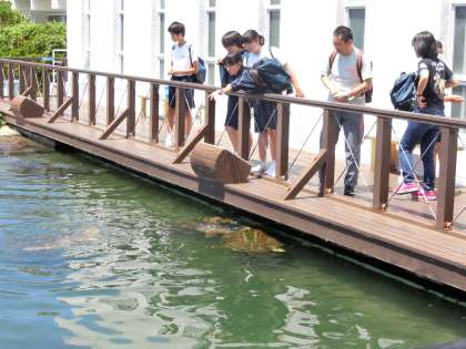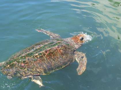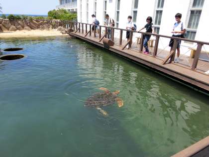 しずかに寝ているウミガメもおおく、時間もゆっくり流れています。