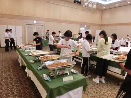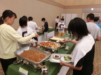 それぞれ好きなおかずをお皿に盛っていきます。