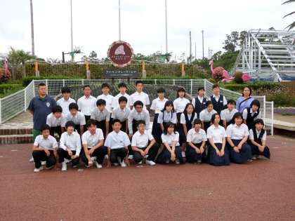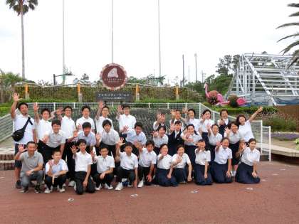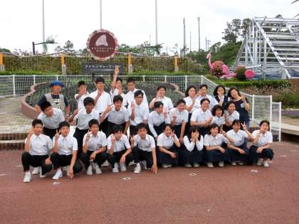 活動前に、フラミンゴ広場で最後の学級写真です。