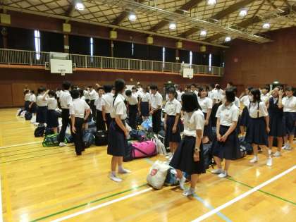 先生や保護者の出迎えの中、予定より少し早く、学校に到着しました。