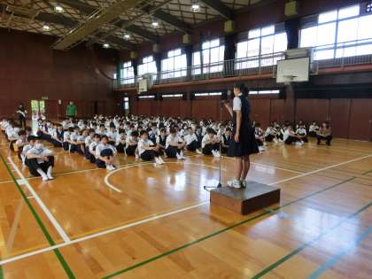 一週間の始まり。本日も全校集会を行いました。