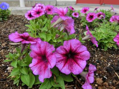 正門の花たちが、キレイな姿で、生徒たちを見送ります!