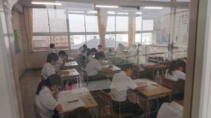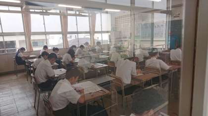 1時間目は英語のテストで、初めてのリスニングテストに挑戦です。