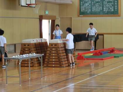 講堂には、運動会のようなチャレンジ種目が用意されていました。
