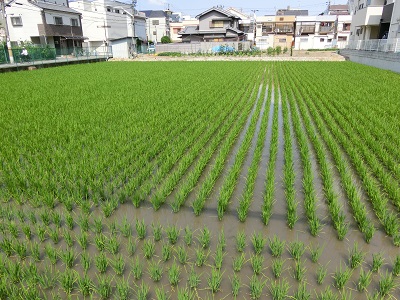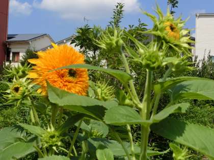 ひまわりが咲き始め、緑の苗もずいぶん大きくなりました!