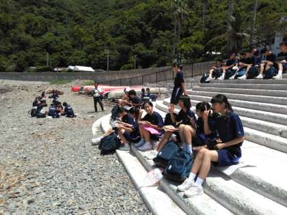 海岸でお弁当タイム!