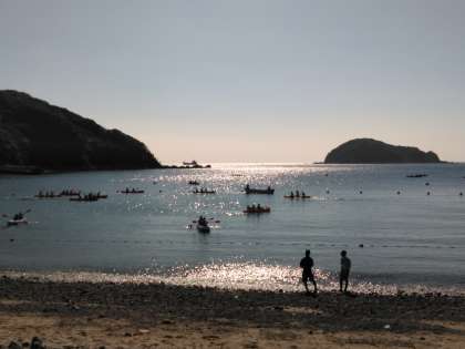 カヌーもカヤックも、ヤシの木目指して帰って来ます。