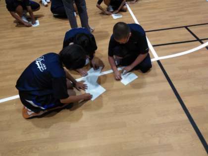 オリジナルの紙ヒコーキを作り、距離を競います!
