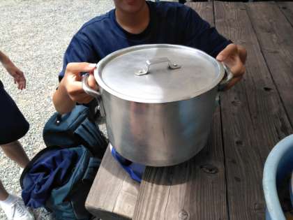 すすで、真っ黒になった寸胴鍋。