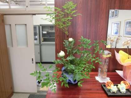 こんな天候不順にもかかわらず、地域の皆様が活け花を飾りにお越しくださいました。