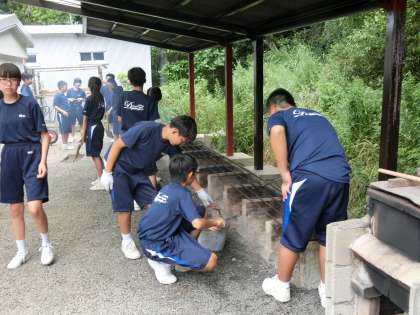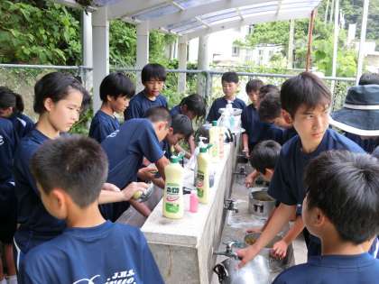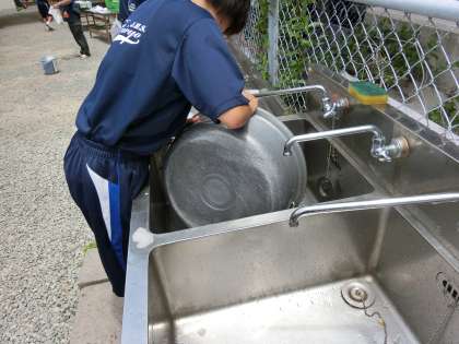 湯沸かし器はないので、水と洗剤で汚れを落とします。