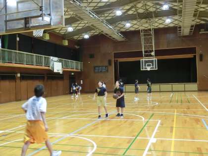 今朝は体育館で、女子バスケットボール部が活動しています。