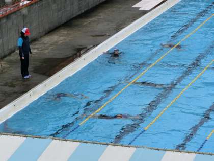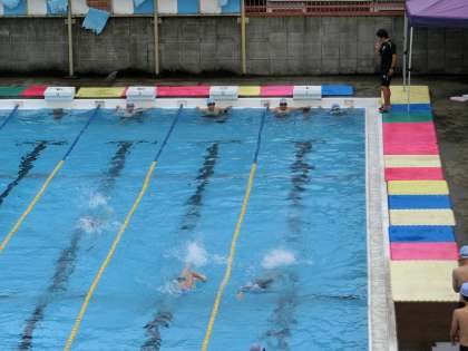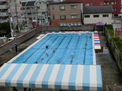 梅雨のため、「太陽の光で輝くプール!」とはいきませんが、