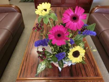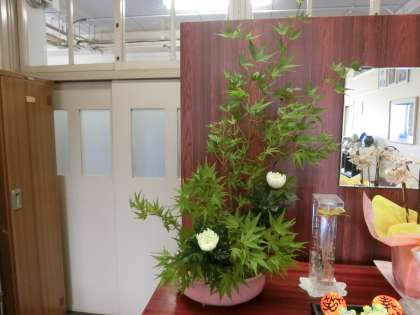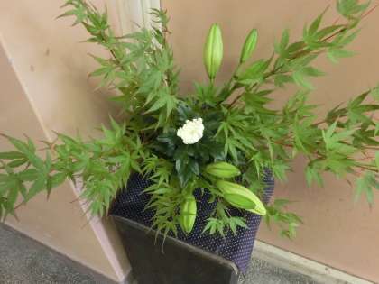 本日、ボランティアの皆様による花卉、そしてフラワーアレンジメント教室のお花を飾っていただきました。