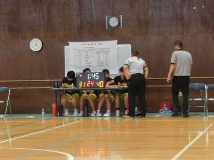 第3クォーターでは、センターのシュートが決まるものの、ミドルや3Pが決まらず、相手のドライブインを許し、得点差を大きく広げることができませんでした。