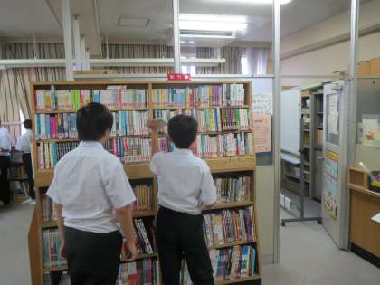 月曜日から金曜日まで毎日昼食後1時から20分間、図書館の開放をしています。図書委員の皆さんはしっかりと仕事をしてくれています。生徒のみなさんも熱心に本を読んでいます。学校では毎年多くの予算を図書購入費に回しています。開放の時間はわずかですが、本を借りて、家庭でもしっかり本を読んでくれたらうれしいです。