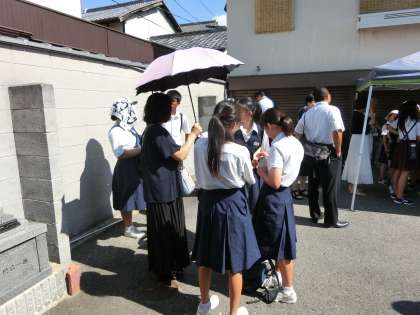 今回、本校の生徒会役員が「平和登校日」の事前学習として、参加させていただきました。