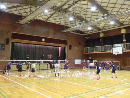 体育館では、バレーボール同好会、バドミントン部が活動しています。