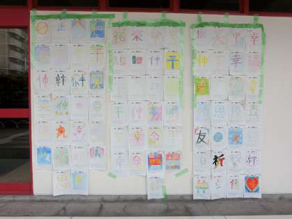 入り口には、1年生の「平和への一文字」が掲示されました。