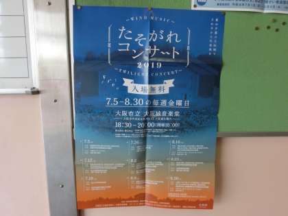 吹奏楽部の「たそがれコンサート」のポスターが掲示されました。