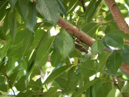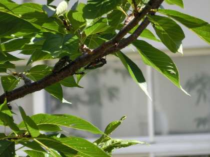 暑さを避けて、幹や葉の陰で鳴いているんですね。