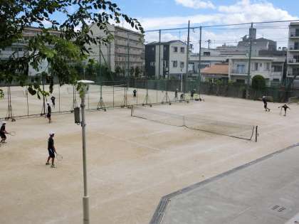 グラウンドでは、テニス部がお盆休み返上で頑張っています。